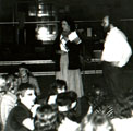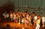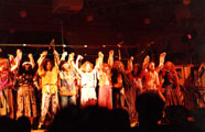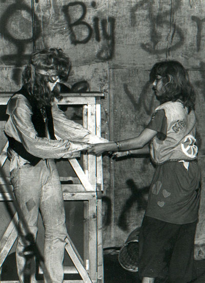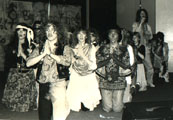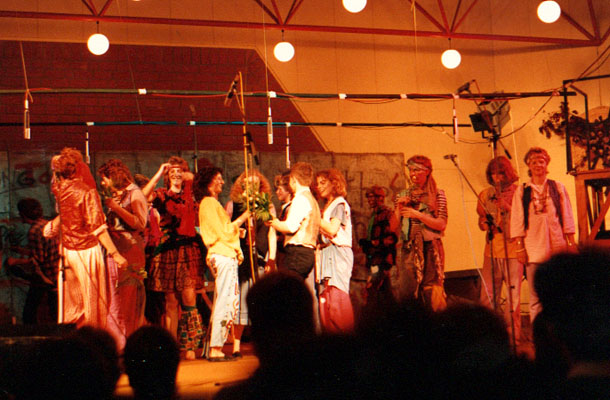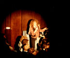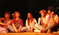 zusammen mit Ensemblemitgliedern bei einer Besprechung während