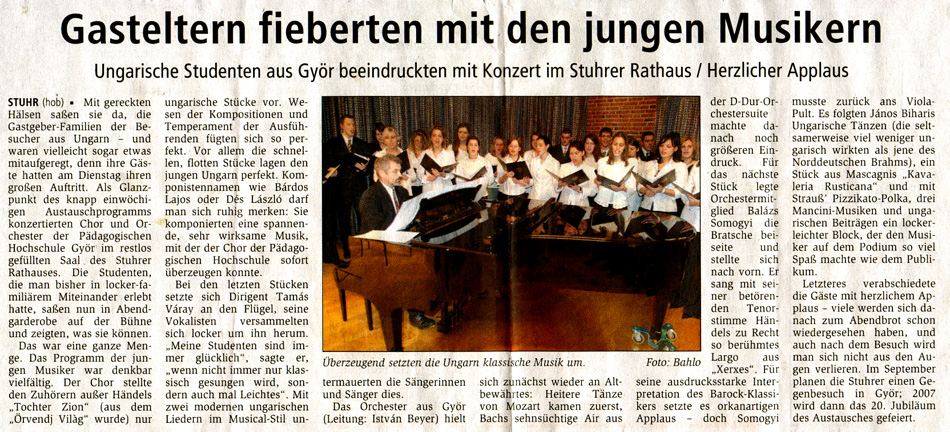Studenten aus Györ beeindruckten mit Konzert im Stuhrer