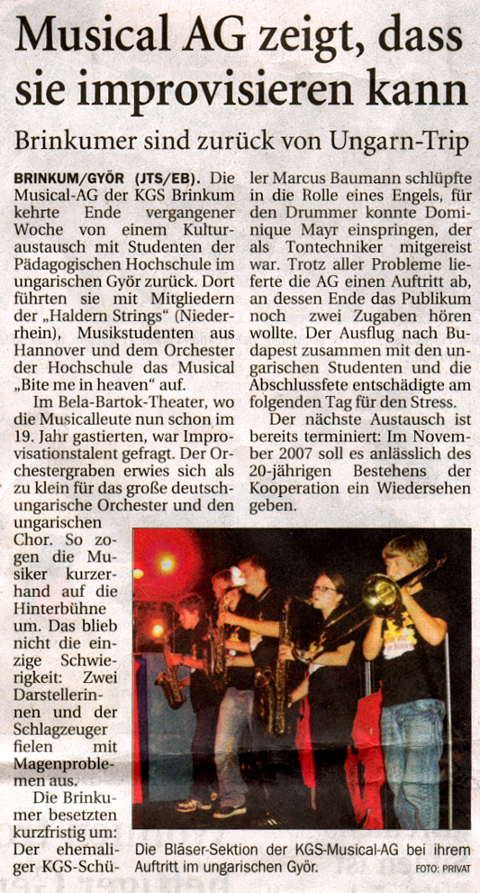 der KGS Brinkum bereitet sich auf "Bite me in heaven"