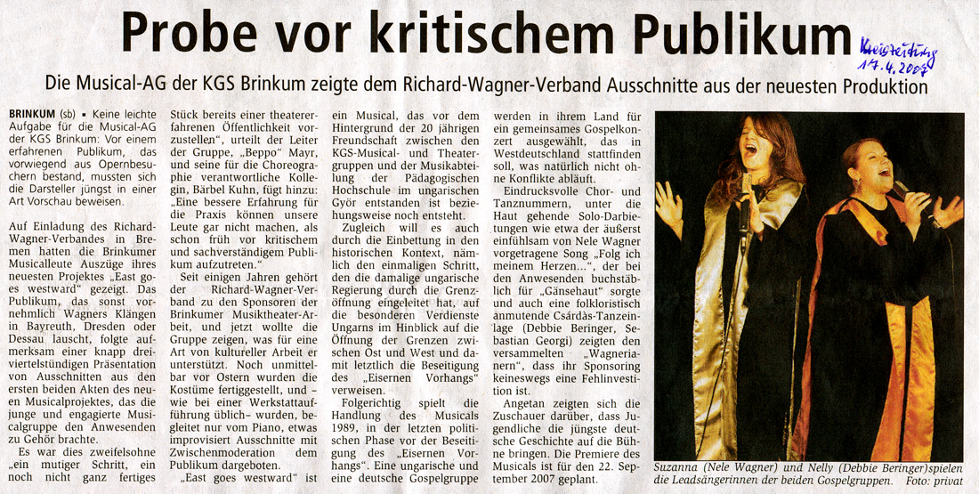 Premiere: Packendes Ost-West-Musical an der KGS Brinkum sorgt