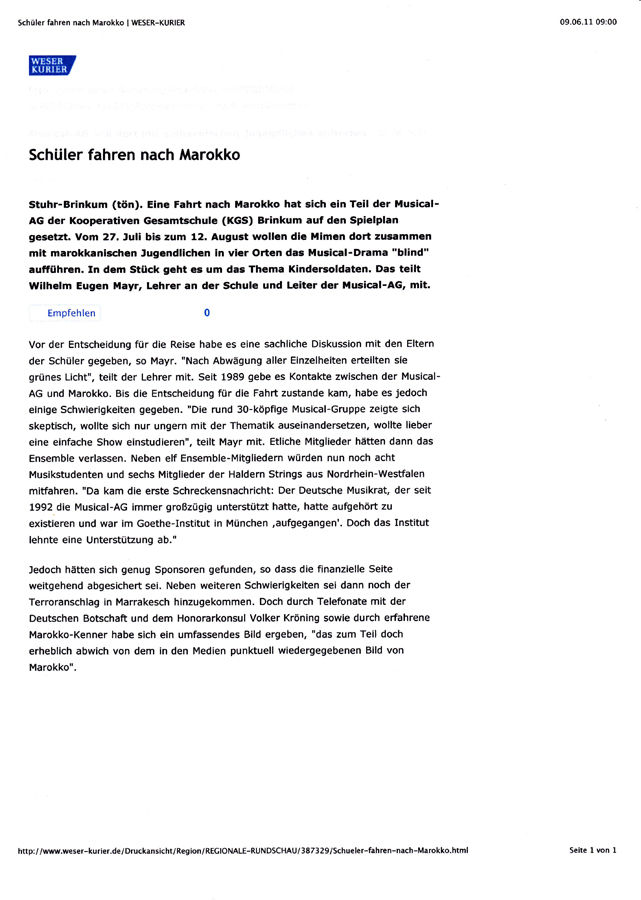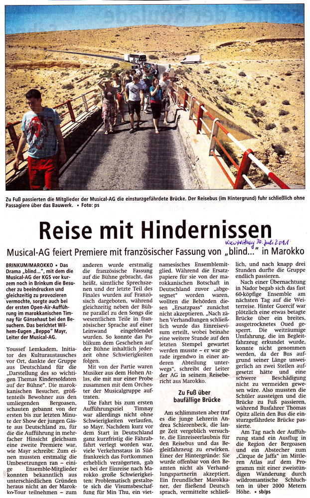 der KGS trat in Marokko auf / Mehrere Probleme bis zum Auftritt |