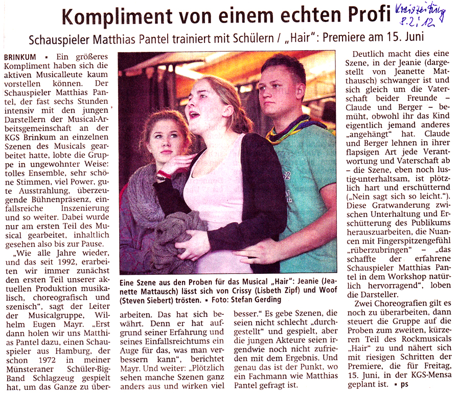 mit Schülern / "Hair": Premiere am 15.Juni |